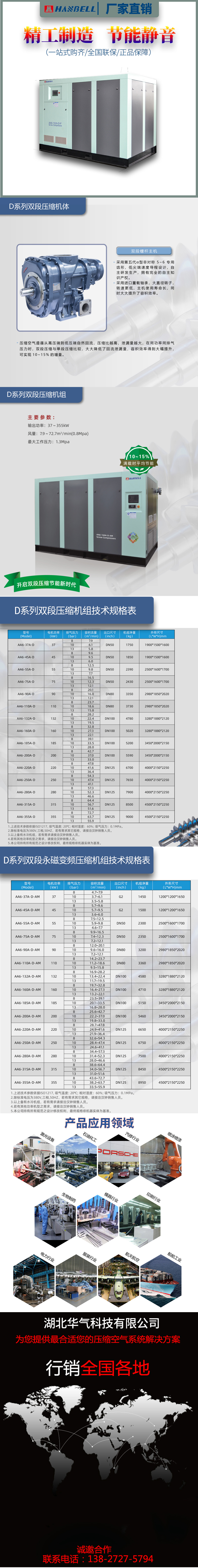 永磁变频螺杆式空压机D系列双段压缩