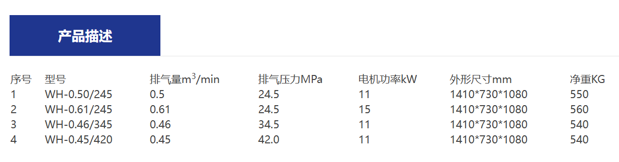 产品名称:南京恒达压缩机中高压有油润滑螺杆机增压机WH-0.50/245 所属类型:恒达压缩机 更新时间:2025-02-28 15:44:45