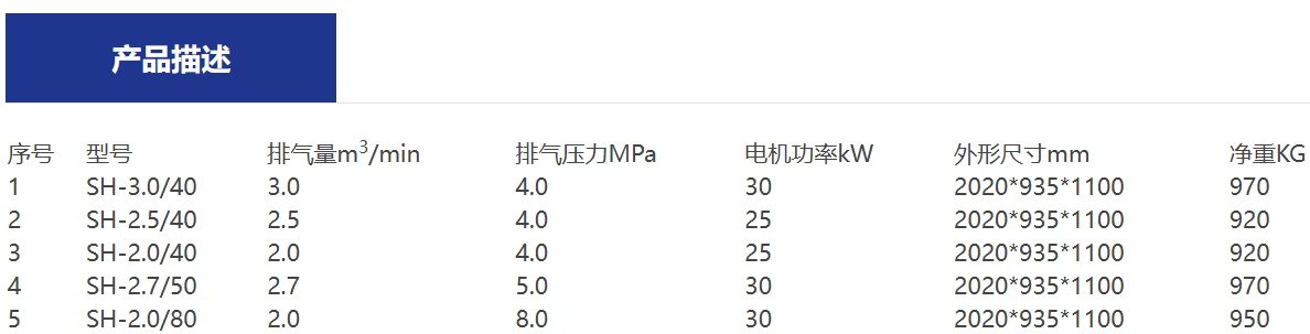 产品名称:南京恒达压缩机中高压有油润滑螺杆机增压机SH-3.0/40 所属类型:恒达压缩机 更新时间:2025-02-28 16:47:44